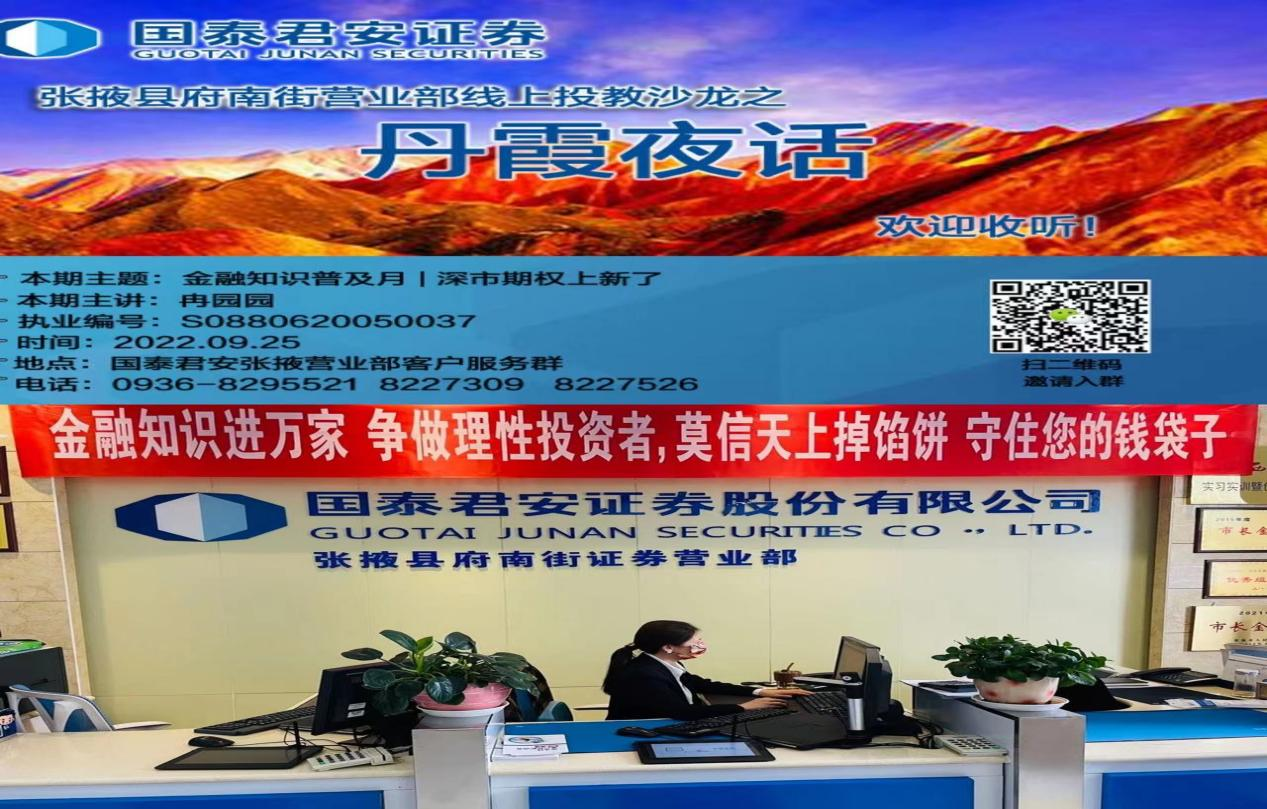 为切实提升社会公众金融素养,有效防范化解金融风险,结合上交所中证500ETF期权,深交所创业板ETF期权、中证500ETF期权品种上市和2022年“金融知识普及月”活动,在交易所、公司的统一领导部署下,国泰君安张掖县府南街营业部成立专项领导小组,积极开展2022年金融知识普及月期权知识普及专项宣传活动。