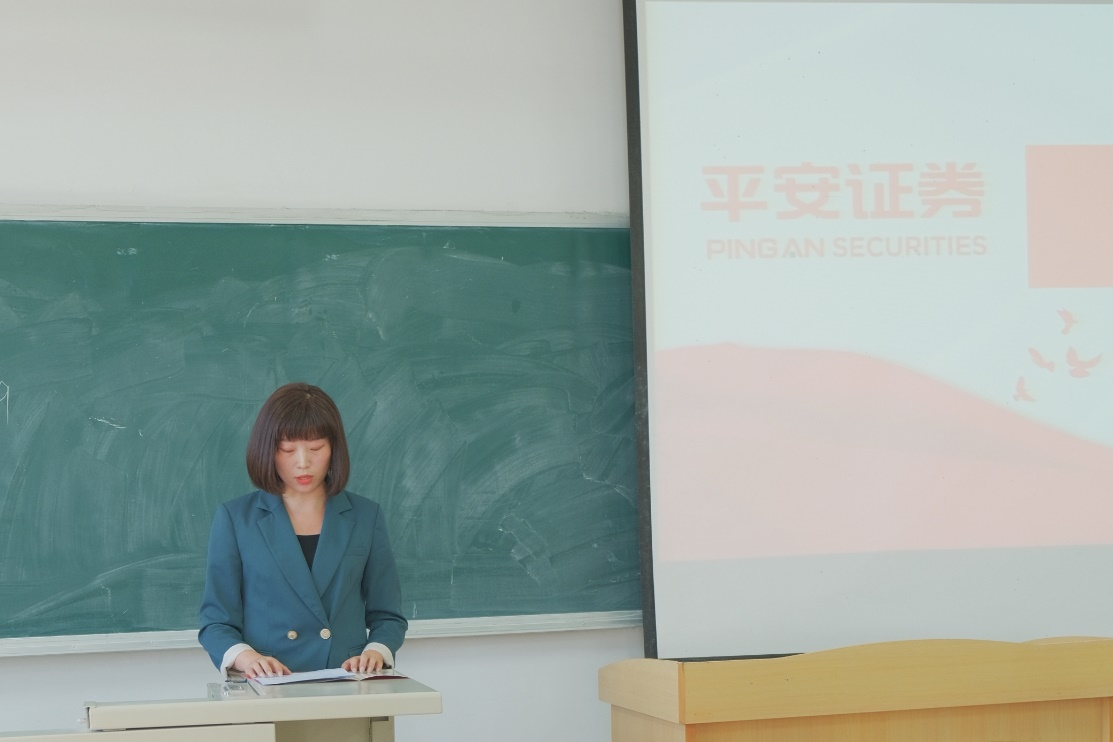 平安证券兰州分公司总经理宋丽君按照证券分类、行业发展历程,结合注册制改革试点实践经验,向与会学生介绍注册制改革的意义,加深社会各方对注册制改革的理解。并通过活动,向广大师生展示可转债交易制度完善、退市常态化、基础设施公募REITs扩募等内容,加强知识普及、规则解读和风险提示,倡导理性投资、价值投资。同时指出,平安证券以先进的金融科技为基础,依托行业领先的互联网平台和高效的线下业务网络,凭借资产获取和产品制造方面的强大实力,为客户提供包括互联网财富管理、企业及机构证券服务以及投资管理的全方位金融产品及服务,打造平安综合金融战略下职能化证券服务平台。