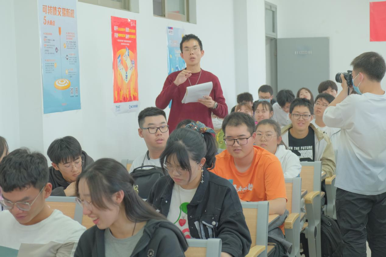 本次活动围绕证券行业发展现状及未来、银行业未来图景、保险基础知识等内容,分别从证券、银行、保险三方面金融知识与学生代表进行交流。