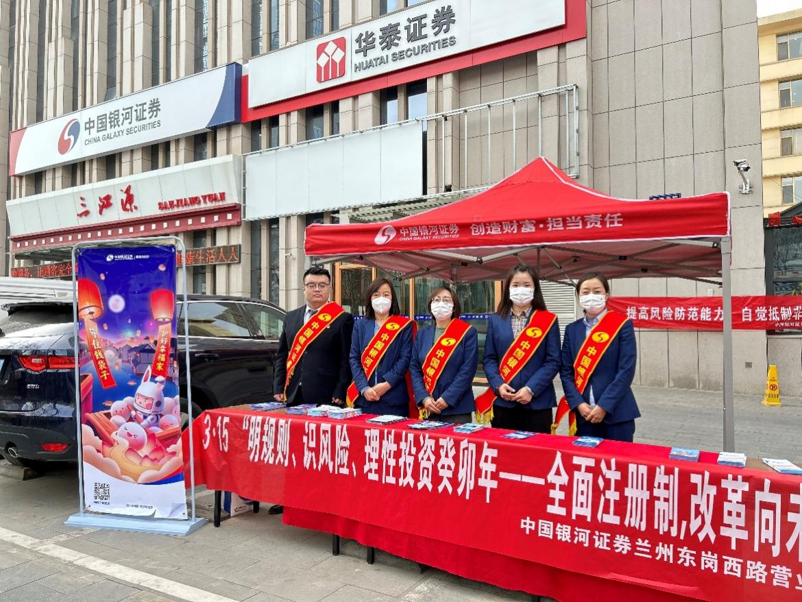 为进一步做好投资者合法权益?;すぷ?,持续提高中小投资者的专业知识水平和风险防范意识,在"3.15国际消费者权益日"来临之际,中国银河证券兰州东岗西路营业部开展以“明规则、识风险、理性投资癸卯年——全面注册制,改革向未来”主题宣传活动。