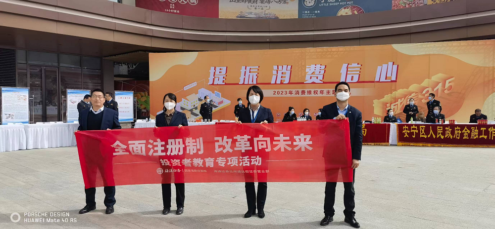 随着3·15消费者权益?;と盏牡嚼?,为深入贯彻落实公司开展“全面注册制,改革向未来”主题投资者教育活动要求,做好投资者合法权益?;すぷ?,助力我国资本市场平稳健康发展,海通证券兰州通达街营业部组织参加了由兰州市安宁区金融办协办的以“提振消费信心”为主题的3·15国际消费者权益日主题宣传活动。