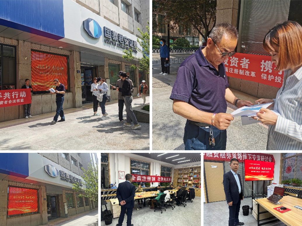 为做好全面实行股票发行注册制投资者?;すぷ?,维护广大投资者合法权益,根据甘肃证券期货业协会及分公司的相关工作要求,国泰君安证券天水建设路营业部围绕“心系投资者,携手共行动——拥抱全面注册制改革,?;ね蹲收吆戏ㄈㄒ妗钡幕疃魈?,积极开展多种形式的投教宣传。