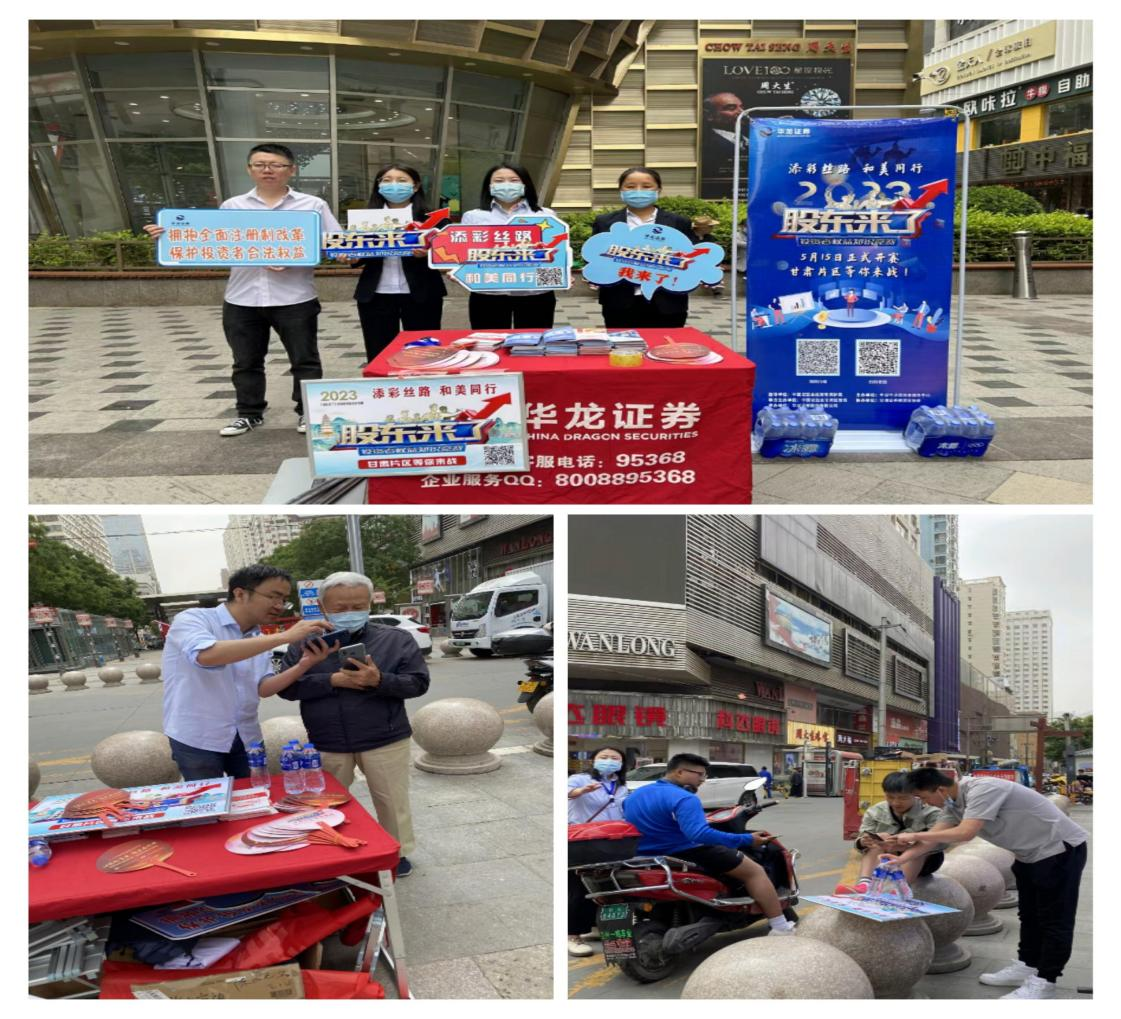 为进一步做好《股东来了》(2023)投资者权益知识竞赛宣传推广工作,?;ね蹲收吆戏ㄈㄒ?,华龙证券兰州酒泉路营业部于5月20日在城关区张掖路街道积极组织开展了户外宣传活动。