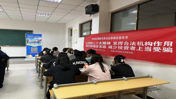 为助力股票发行注册制全面实施,推动资本市场投资者教育纳入国民教育体系,丰富在校学生金融知识,提升在校学生识别、防范非法证券风险意识,帮助学生树立正确的投资理念。海通证券庆阳西大街营业部走进陇东学院开展金融知识讲座,给学生讲解注册制全面实施相关内容、非法证券期货投资陷阱,推广《股东来了》(2023)投资者权益知识竞赛活动。
