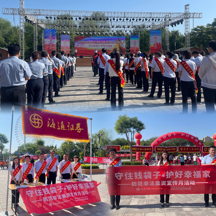 为做好新形势下防范和处置非法集资宣传教育工作,维护社会经济金融秩序,增强公众防范非法集资意识,海通证券武威祁连大道营业部于6月15日参与了“守住钱袋子·护好幸福家”武威市2023年防范非法集资集中宣传活动。