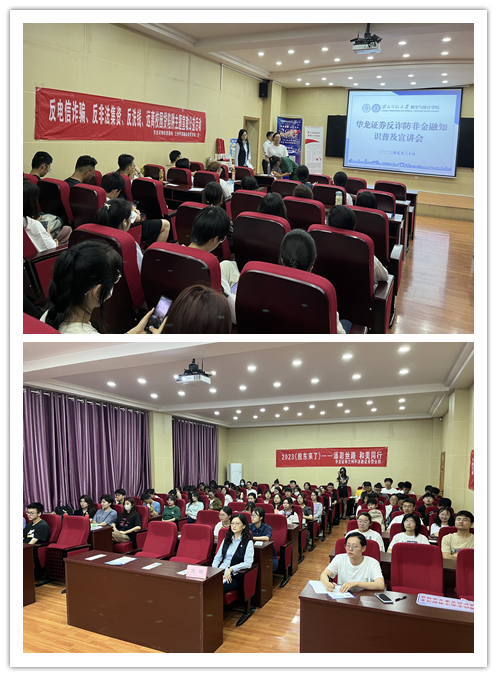5月30日,营业部携手华龙证券投教基地走进西北师大数学与统计学院,开展“反诈防非进企业公益宣教”活动,讲师通过典型案例提示师生对非法消费信贷诱导仔细甄别,远离校园贷,对于网络新媒体平台提高警惕,消费理性有度、主动拒绝非法金融活动,结合虚假实习、兼职、招聘等陷阱案例,提示与会学生核实机构信息及资质,避免受骗造成损失,向参会师生发起倡议:做知法守法、技能合格、珍惜征信、远离诱惑的优秀社会中坚力量。