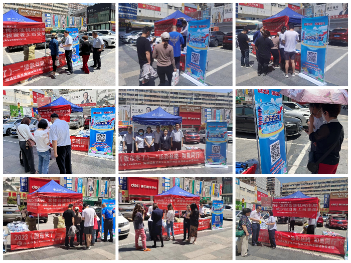 本次活动围绕“全面实行股票发行注册制”以及“防范非法集资宣传月”展开。通过对往来的群众以及周边商户发放宣传折页、扫码知识竞赛答题、宣讲股票发行注册制以及防范非法集资案例等相关内容,扩大宣传覆盖面,普及金融知识。