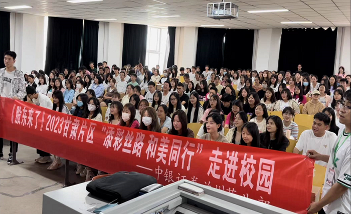 为落实全面实行股票发行注册制投资者教育保护工作,积极推广《股东来了》(2023)投资者权益知识竞赛活动,6月8日,中银国际证券兰州天水北路营业部走进兰州工商学院,开展了以“添彩丝路,和美同行”为主题的投资者教育进高?;疃?,面向财政金融学院230名在校大学生进行了全面注册制及《股东来了》宣讲推广活动。