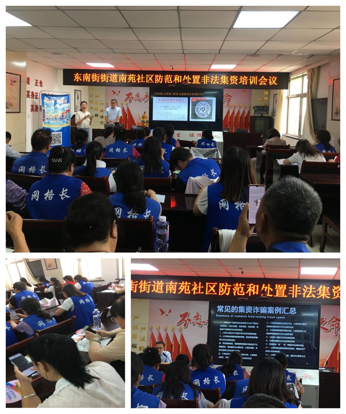 6月是防非宣传月,为提升人民群众对金融投资知识和对非法证券期货活动的辨识能力,引导投资者正确认识、理性参与资本市场投资活动,切实做好投资者保护宣传工作。同时,为推广中国证监会启动的“小红花 心向党”防非公益活动,国泰君安证券酒泉南大街营业部于6月19日,开展了以“守住钱袋子,护好幸福家”为主题的防非知识讲座走进社区活动,面向酒泉南苑社区东南街街道近50名网格长开展防非知识培训及“添彩丝路 和美同行——《股东来了》(2023)知识竞赛”、全面注册制等内容的投教宣传活动。