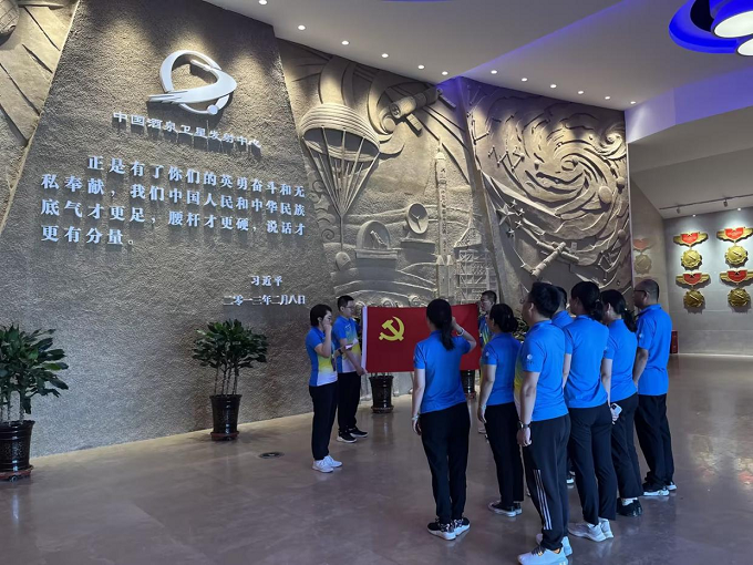 在酒泉卫星发射中心博物馆纪念墙前,面对鲜红的党旗,大家重温入党誓词,重忆入党初心。从航天事业的光辉历程中汲取前行的力量,集体接受了一次精神洗礼。