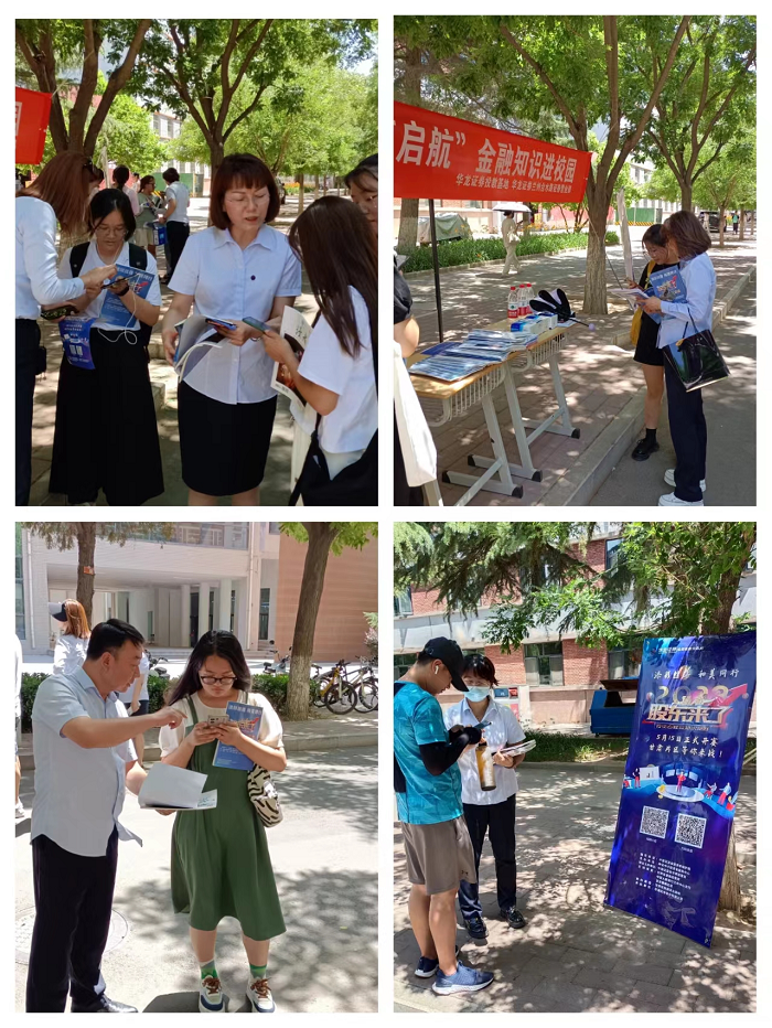 六月,鲜花盛开,骄阳似火?;と贾莺纤酚挡炕煊Ω仕嗍≈ぜ嗑?、共青团甘肃省委、甘肃省教育厅联合举办“赠汝书香 财商起航”金融知识进校园暨《股东来了》2023投资者权益竞赛活动的通知要求,在总部投教基地的大力支持下,营业部总经理亲自带领十几位员工走进西北师范大学,给参与《股东来了》知识竞赛的在校大学生赠阅《读者》形象刊,让学生坚持快乐阅读、深度阅读,体会书本的油墨本色。本次活动还进行“守住钱袋子 护好幸福家”防范非法集资宣传,在现场向学生宣传讲解校园贷的危害及防范非法金融诈骗案例,提升在校学生的金融素养。