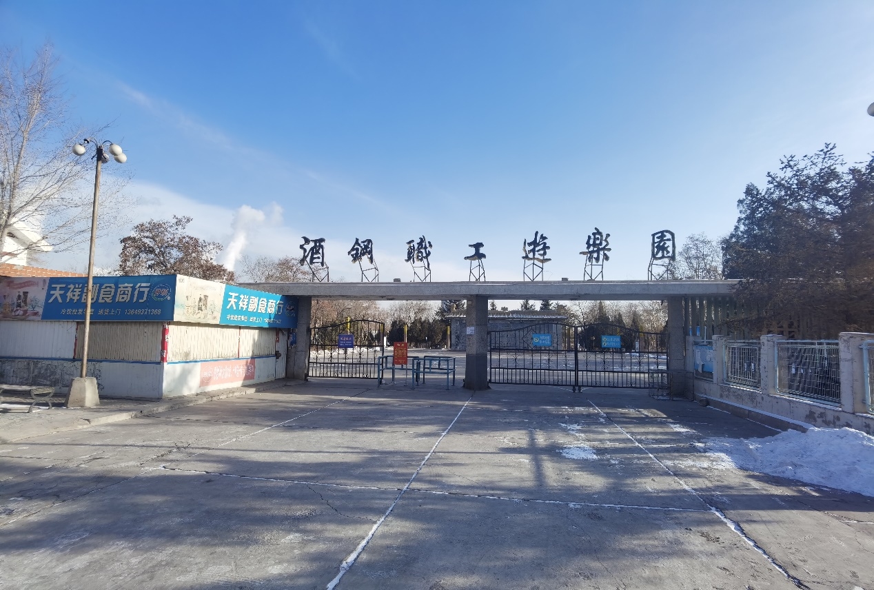 酒钢职工游乐园 位于五一北路东侧,雄关东路以北。1994年10月1日建成,总面积23万平方米,是我们这个工业城市中的一片独特且闲适的天地。这里有人工湖、九曲桥、儿童乐园、观赏温室、群艺馆、假山、“3·12”纪念碑、绿化带、园林景观长廊、这些元素构成了一个世外桃源般的景象,给我的童年带来了无尽的欢乐。
