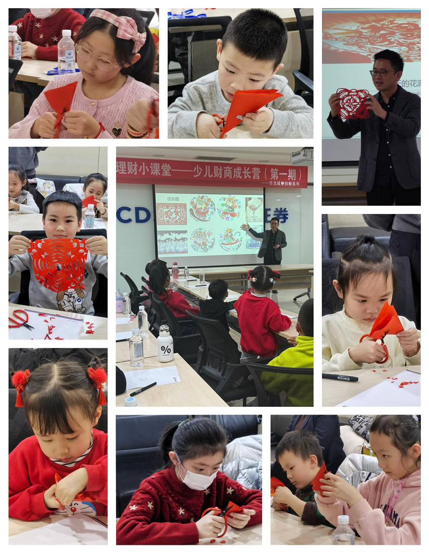 本次华龙证券投教基地首期少儿财商教育活动,特邀请了来自读者集团、甘肃省非物质文化遗产临洮剪纸市级代表性传承人裴天鹏老师,亲自为孩子们指导传统手工剪纸艺术,寓教于乐帮助孩子们培养少儿财商意识,同时深刻体会非遗剪纸技艺的博大精深。
