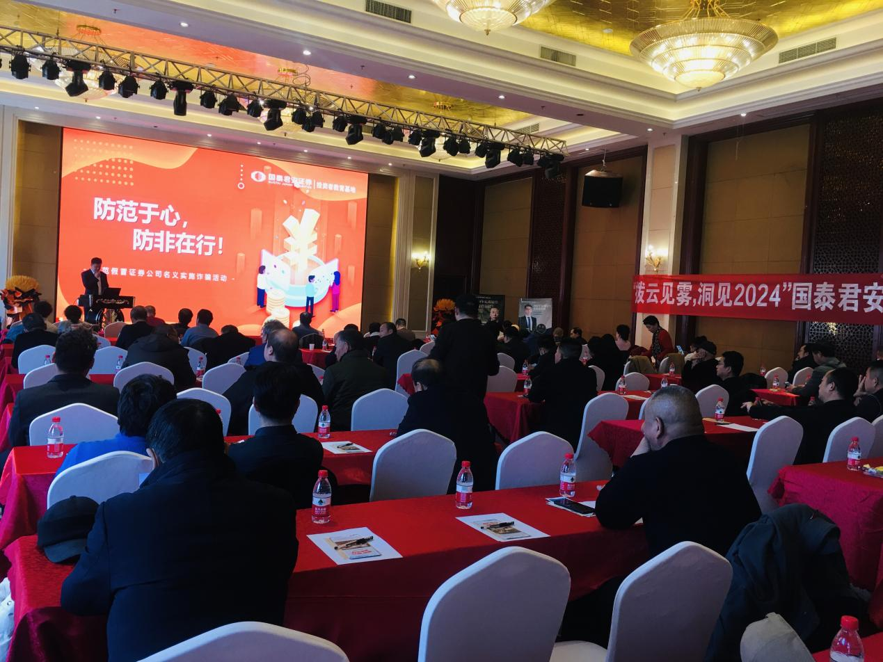 为进一步帮助投资者解读和判断2024年投资机会,全面推进财富管理工作及客户服务工作的高质量发展,提升国泰君安证券酒泉南大街营业部在辖区内的影响力和竞争力,提高投资者投资理念和防范非法证券意识,营业部于2024年3月2日举办“拨云见雾,洞见2024”国泰君安证券投资策略报告会。