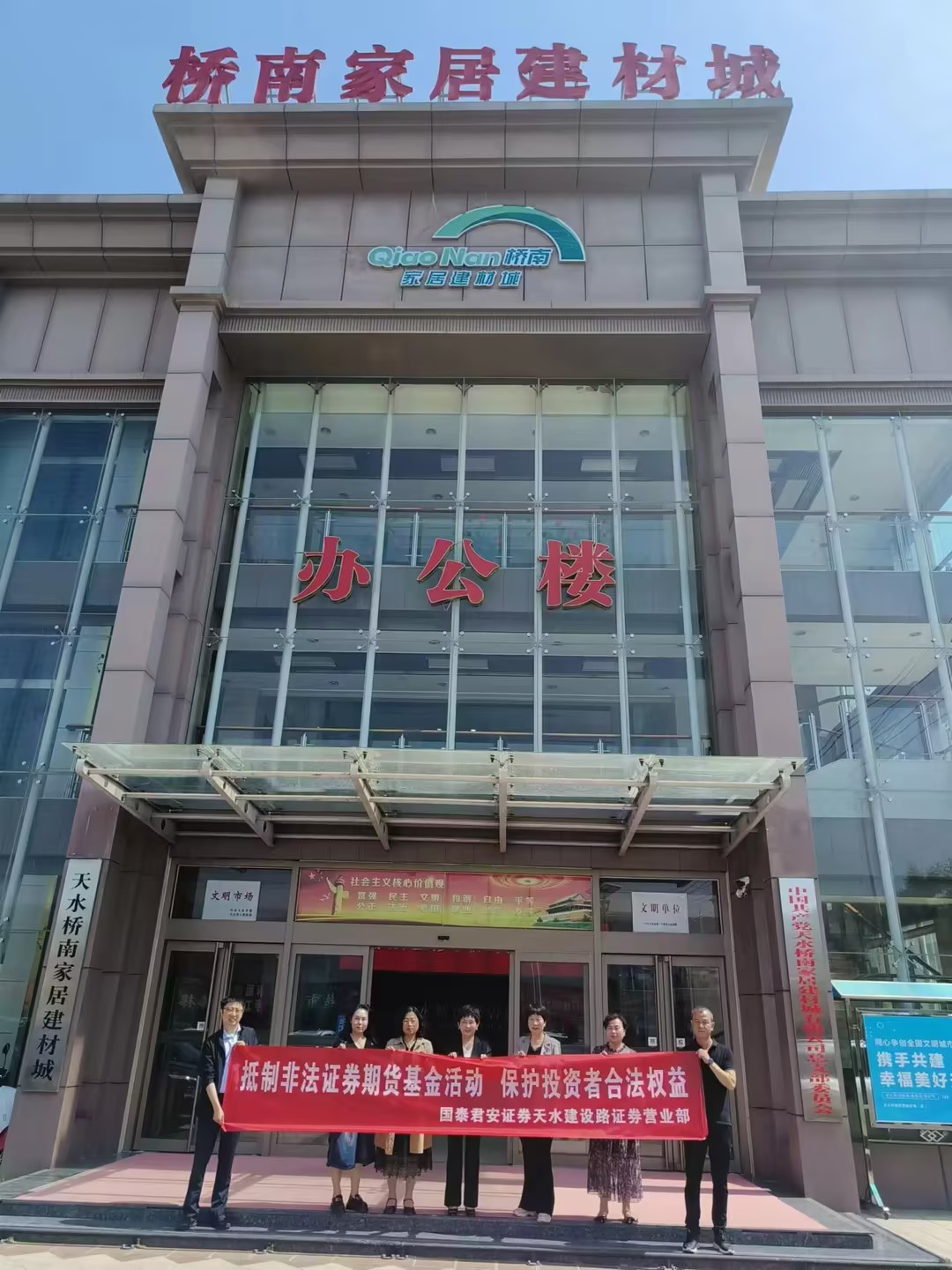 为积极响应中国证监会的号召,国泰君安天水建设路营业部紧跟中央金融工作会议精神和新“国九条”的战略导向,拟于5月15日至6月15日期间,深入天水市麦积区桥南建材市场,举办以“抵制非法证券期货基金活动,?;ね蹲收吆戏ㄈㄒ妗蔽魈獾男疃谖褰烊婪斗欠ㄖと诨趸鹦略鎏砩囊槐?。