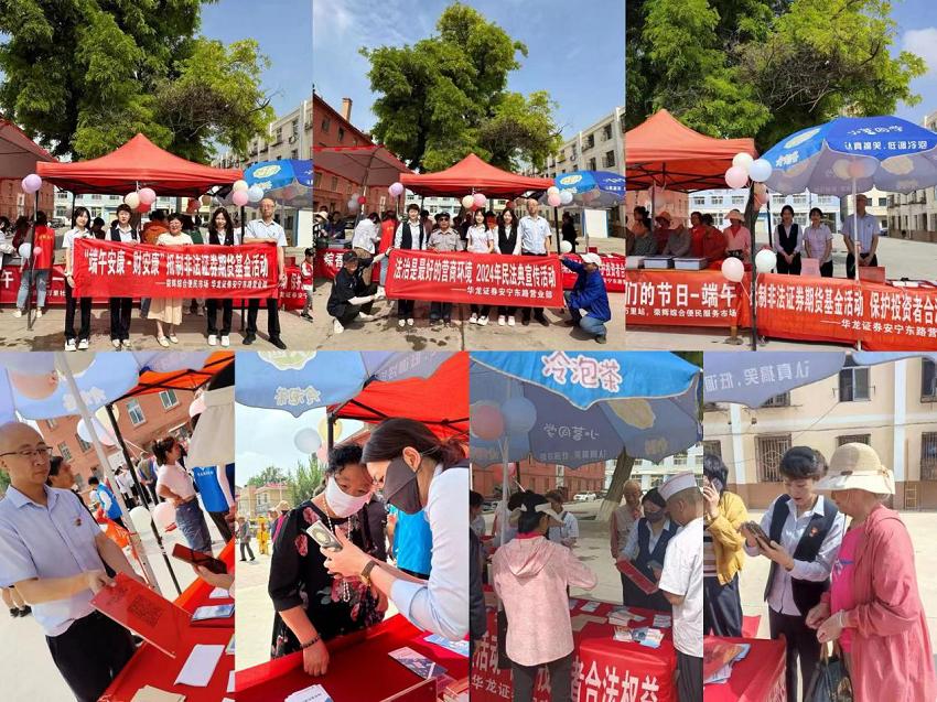 为深入贯彻中央金融工作会议精神,落实资本市场新“国九条”及中央金融办关于防范打击非法金融活动,突出以人民为中心的价值取向,加大防范非法证券期货基金活动宣传力度,?;ぶ行⊥蹲收吆戏ㄈㄒ?,在端午佳节来临之际,华龙证券兰州安宁东路营业部携手荣辉综合便民服务市场以及安宁西路街道万里社区,结合“2024年防范非法证券期货基金宣传月”活动,一同举办了具有浓厚节日氛围的“端午安康 财安康”抵制非法证券期货基金宣传活动。