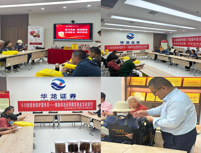 为深入贯彻落实中央金融工作会议精神,落实新“国九条”及中央金融办关于防范打击非法金融活动相关要求,华龙证券兰州七里河营业部积极响应甘肃省证券期货业协会和华龙证券投资者教育基地号召,精心策划并实施了多场投资者教育活动,旨在提高广大投资者的金融素养和风险意识,进一步推动投资者教育的普及和深化。