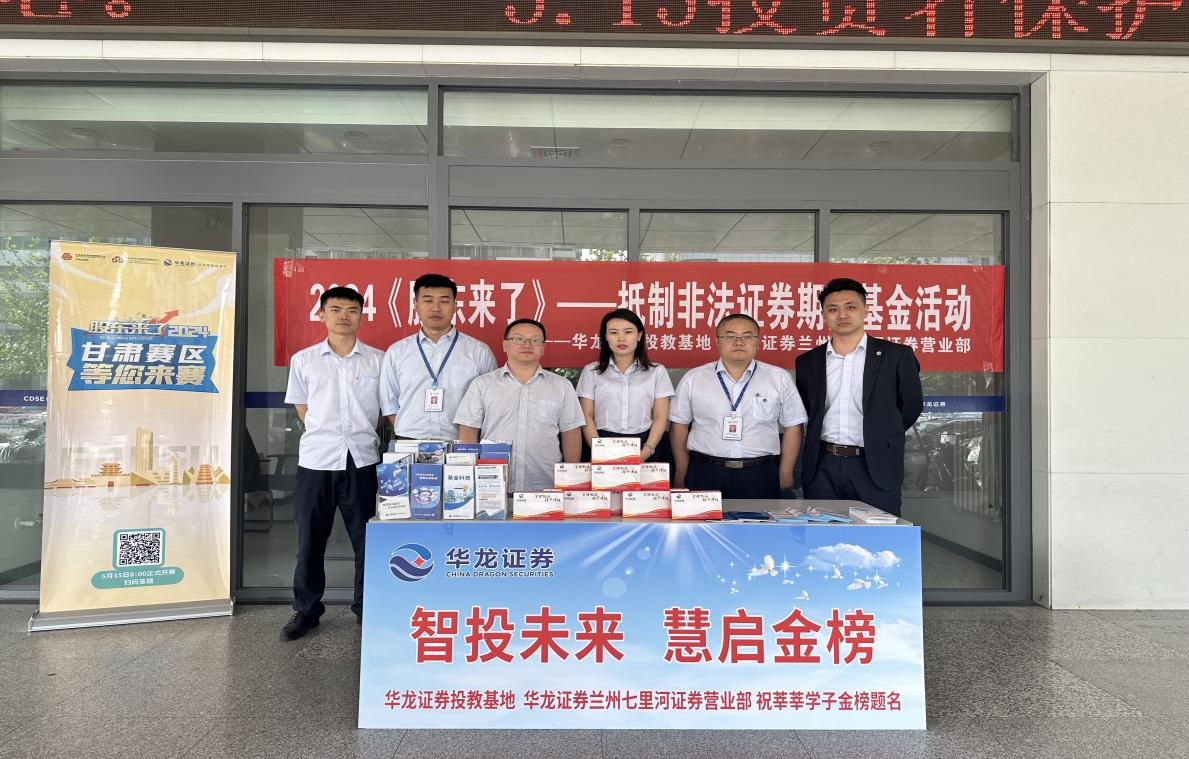 为深入贯彻中央金融会议精神,落实资本市场新“国九条”及中央金融办关于防范打击非法金融活动,同时结合《股东来了》(2024)相关宣传要求,华龙证券兰州七里河营业部积极响应甘肃省证券期货业协会和华龙证券投教基地的号召,结合高考时节特举办了“智投未来,汇启金榜”抵制非法证券期货基金活动宣传。