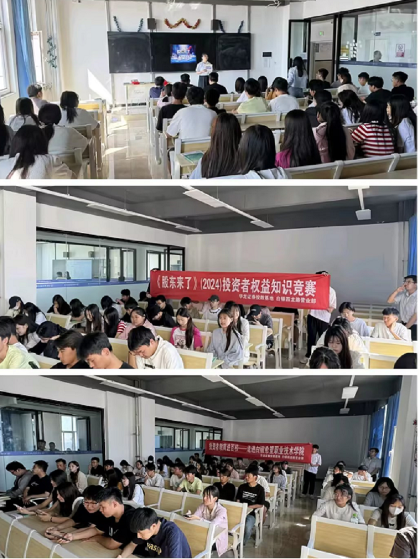 为进一步推动投资者教育纳入国民教育体系,结合《股东来了》(2024)投资者权益知识竞赛宣传活动,华龙证券白银四龙路营业部积极扩大活动宣传面,6月26日联合白银市希望职业技术学院走进校园开展防非知识暨2024《股东来了》宣传活动。