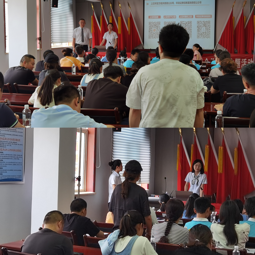 为深入贯彻落实中央金融工作会议精神,落实资本市场新“国九条”及中央金融办关于防范打击非法金融活动、治理金融领域非法中介工作部署,切实有效?;ず猛蹲收咛乇鹗侵行⊥蹲收吆戏ㄈㄒ?,讲好高质量发展的上交所ETF市场以及防范非法证券活动,2024年7月12日,在上海证券交易所、甘肃证监局、甘肃证券期货业协会的指导下,华龙证券投教基地联合兰州雁滩路证券营业部组织开展了以“服务投资者 共享高质量”为主题的上交所会员合作投教活动,旨在引导投资者践行价值投资、理性投资、长期投资。本次活动得到了小雁滩村社区的大力支持,超50名投资者到场参与。