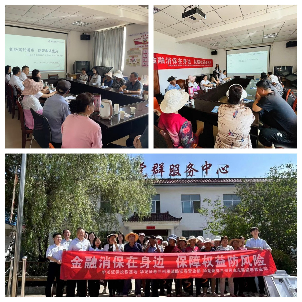 夏末秋初,金融消费者权益?;そ逃禄疃缤还闪顾那锓?,吹到了兰州红沟村村委会。在这里,华龙证券投资者教育基地联合兰州雁滩路营业部、兰州民主东路营业部,一同为村民们带来了一场关于“拒绝高利诱惑,防范非法集资”的讲座。旨在增强村民们的金融安全意识,引导他们树立正确的理财观念,共同守护好自己的“钱袋子”。