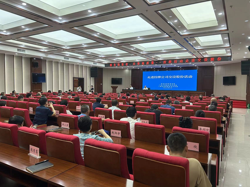 为深入贯彻落实中央金融工作会议精神以及新“国九条”有关要求,持续讲好高质量发展故事,搭建市场主体沟通交流平台,营造理性投资、价值投资、长期投资的市场氛围,2024年8月1日,华龙证券投教基地联合兰州平凉路营业部、兰州东岗西路营业部共同开展走进挂牌公司活动,携手投资者一起走进交设股份。