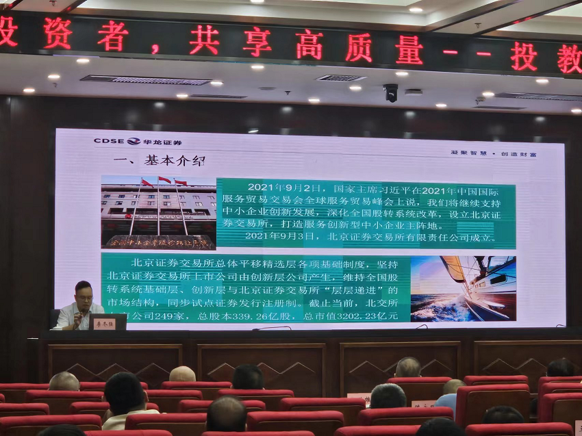 华龙证券讲师就北交所转板机制、大宗交易以及新三板交易机制进行了讲解,一名参加活动的投资者表示,本次活动是对自己投资知识的一次极大提升,“让我对各个板块的证券交易有了更多的了解”。此次投资者走进挂牌公司活动,让投资者对交设股份的经营规模、市场发展状况及战略规划有了更直观的认识,有助于投资者在投资决策中能更加客观理性的分析和考量;同时,通过华龙证券讲师的讲解,让投资者对于股转挂牌公司交易规则有了更深刻的了解。