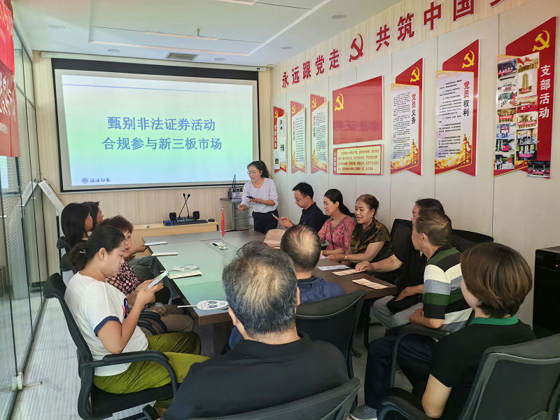 2024年8月21日海通证券天水新华路营业部邀请客户走进营业部开展了以“共筑科创未来 理性投资同行”和“甄别非法证券活动 合规参与新三板市场”为主题的投资者教育专题活动。