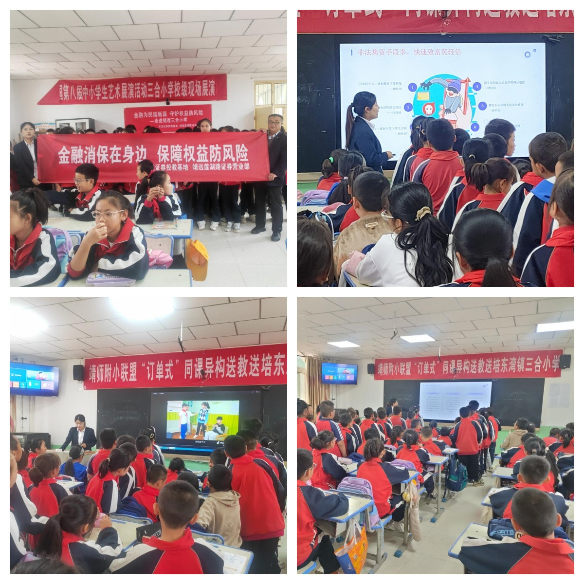 为积极贯彻国家加强金融知识普及,提升公众金融素养的号召,进一步加强校园安全教育,增强青少年网络电信诈骗防范意识,防止电信诈骗侵害青少年,近日,华龙证券靖远莲湖路营业部开展了2024年“金融消费者教育宣传月”—走进靖远县三合小学“防范电信网络诈骗”公益知识主题宣讲活动。