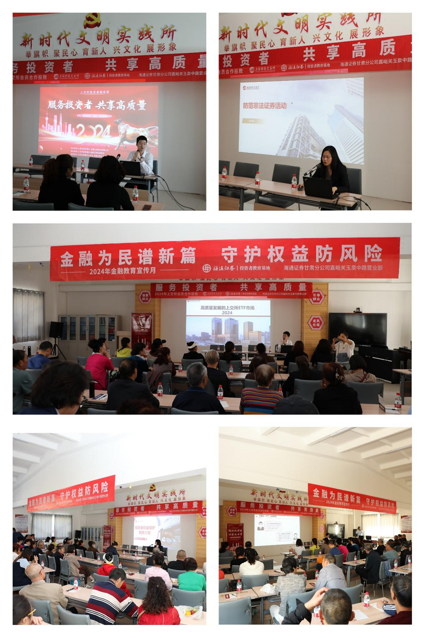 为深入贯彻中央金融工作会议精神及新“国九条”部署要求,更好地保护投资者尤其是中小投资者的合法权益,海通证券嘉峪关营业部积极协助上海证券交易所,于近日在嘉峪关市建设社区成功举办了“服务投资者 共享高质量”投资者教育活动。本次活动旨在通过普及ETF知识及防范非法证券活动,引导社区居民树立正确的投资理念,提高风险防范意识。