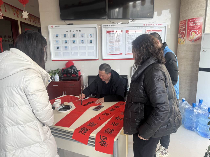 人逢盛世精神爽,年根岁末送春联。红红火火的春联传递着美好愿望,希望新年能有新气象。为更好践行二十届三中全会精神及社会主义核心价值观,中信建投证券天水重新街党支部联合天水重新街社区党委举办了“党建引领、恭迎新春”活动,为社区居民及营业部广大客户现场书写春联。