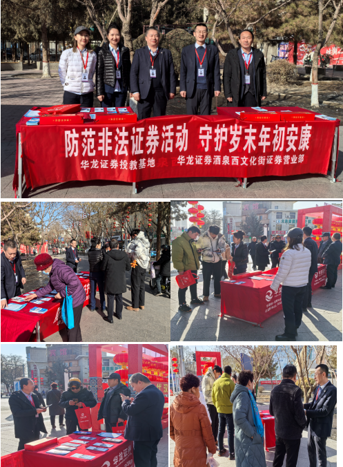 2025年1月21日,华龙证券酒泉西文化街证券营业部开展“理性投资伴我行”岁末年初防非外宣活动。着力提升社会公众防范非法集资的意识和能力,营造节日期间良好的舆论宣传氛围,?;と嗣袢褐诓撇踩?。