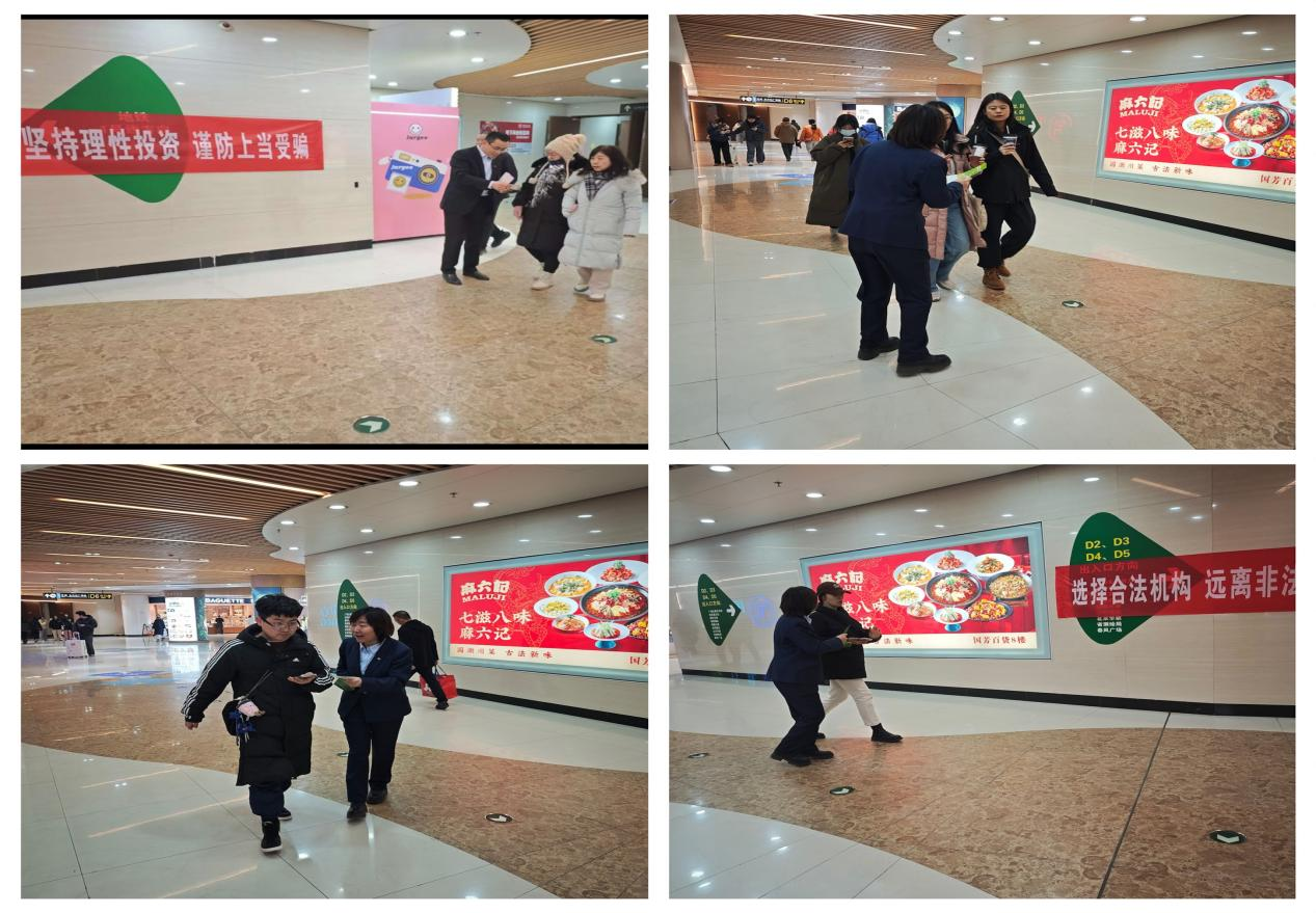 在岁末年初这一关键时期,各类非法金融活动往往趁虚而入,给公众财产安全和金融市场稳定带来严重威胁。为积极响应监管部门号召,切实增强公众的金融风险防范意识,?;ね蹲收叩暮戏ㄈㄒ?,国泰君安证券兰州庆阳路营业部精心策划并组织开展了一系列丰富多样的防非宣传活动,以实际行动为金融安全保驾护航。