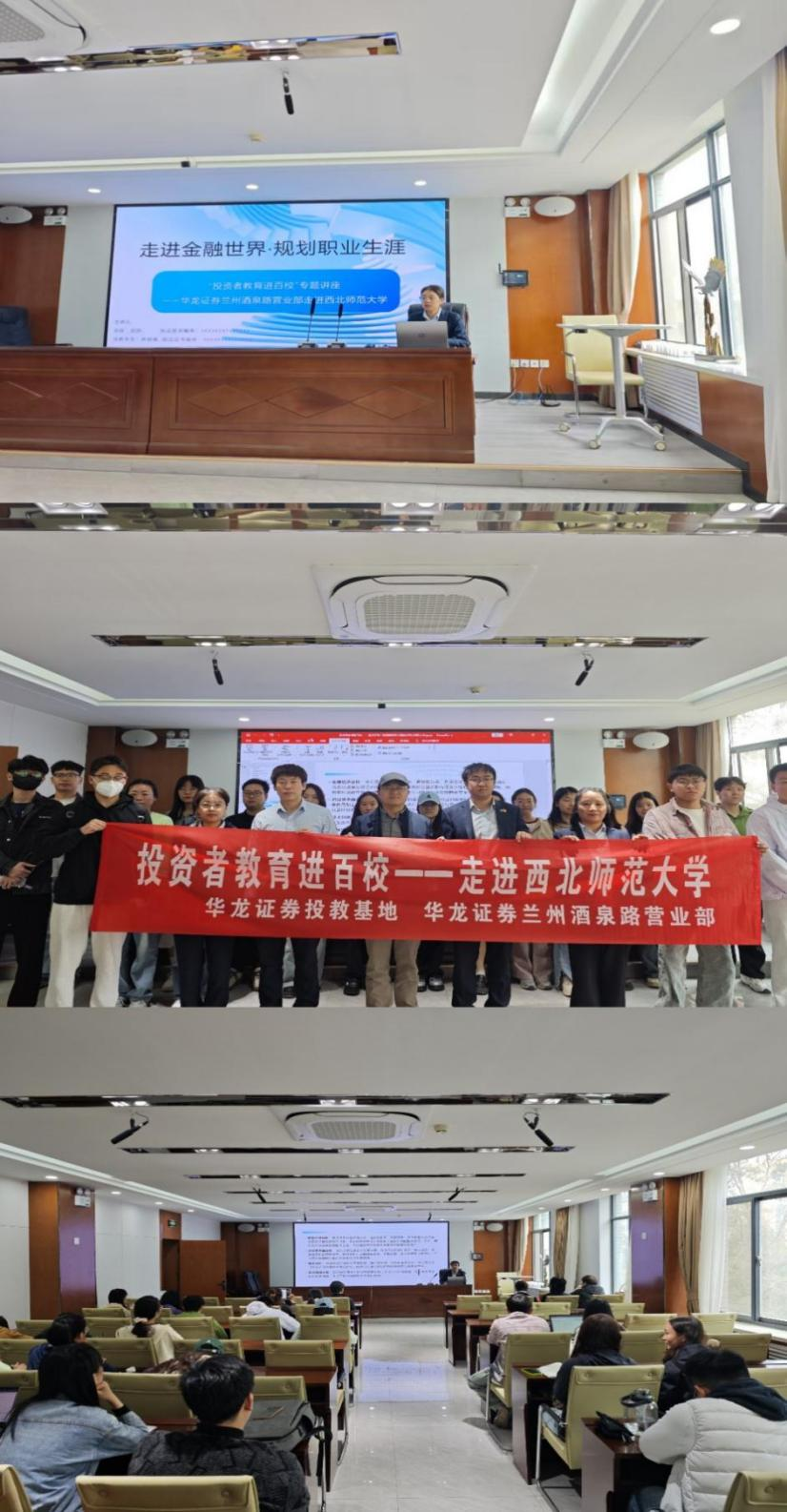 为积极响应中国证券业协会“投资者教育进百?!背?,推动投资者教育纳入国民教育体系,2025年4月23日,华龙证券兰州酒泉路营业部联合西北师范大学组织开展“投资者教育进百?!弊ㄏ钔督袒疃?。此次投教活动以讲座形式开展,旨在通过普及证券知识,提升在校学生金融素养,培养理性投资理念,增强风险防范意识,助力资本市场高质量发展。