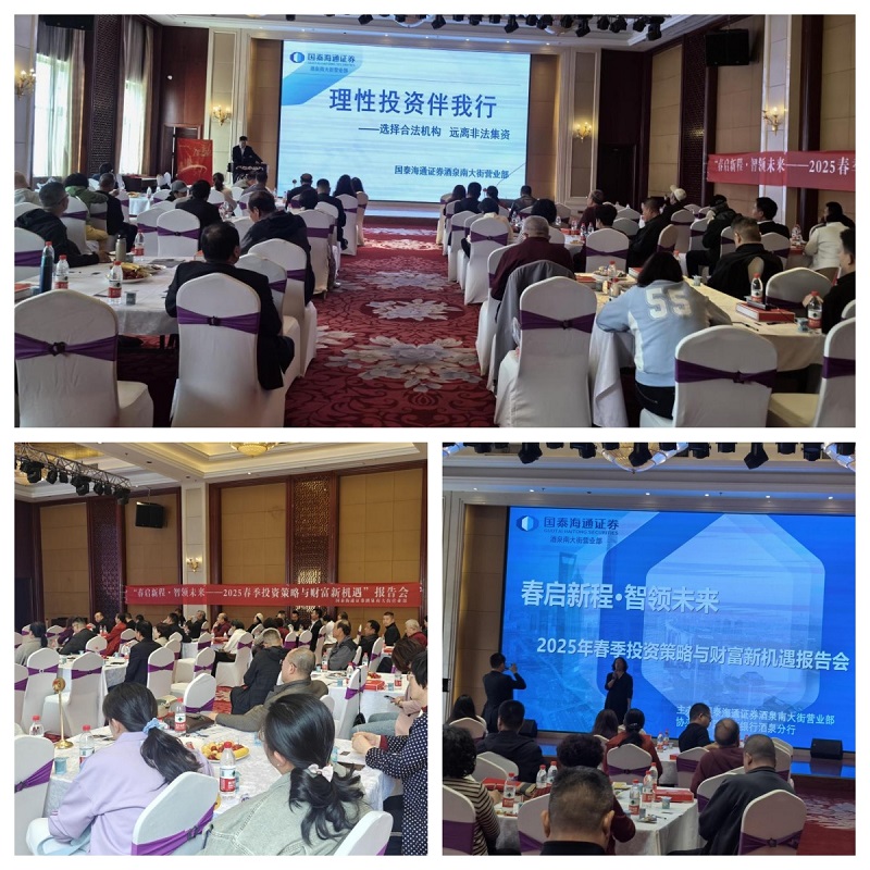 为助力投资者精准把握2025年资本市场的结构性机会并有效规避潜在风险,国泰海通证券酒泉南大街营业部于2025年4月19日举办了“春启新程·智领未来——2025春季投资策略与财富新机遇”主题报告会。本次活动以专业分析、配置策略交流为核心,打造了高价值投资者互动平台,有效提升了客户粘性与品牌影响力。