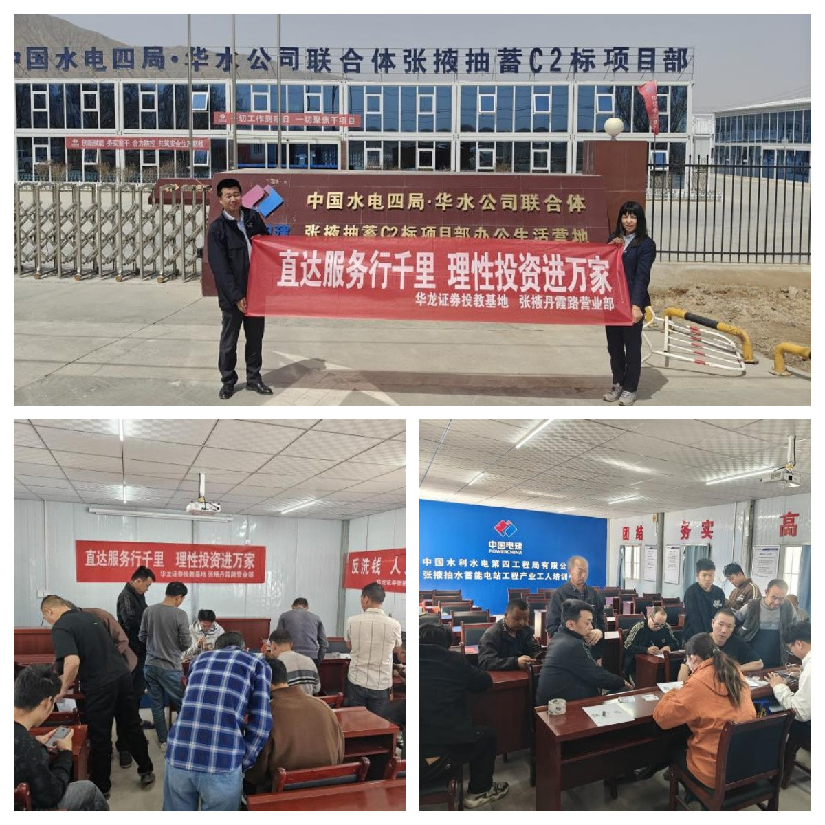 为践行金融五篇大文章,做好金融服务实体经济工作,扎实开展普惠金融服务,4月21日华龙证券张掖丹霞路营业部联合建设银行张掖西环路支行走进张掖抽水蓄能电站项目部生活区,为来自全国各地的工人朋友提供便捷金融服务的同时深入开展 “直达服务行千里,理性投资进万家” 主题投教活动,帮助他们提升风险识别能力,充分认识不法金融活动的危害,远离非法证券欺诈陷阱。