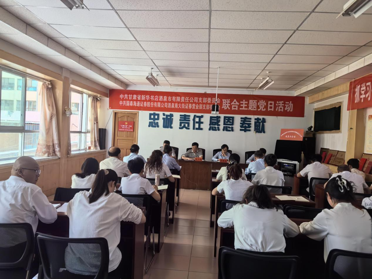 为深入学习贯彻党的二十大精神,加强企业党组织间的交流合作,2025年5月19日,中共国泰海通证券股份有限公司酒泉南大街证券营业部支部委员会与中共甘肃省新华书店酒泉市有限责任公司支部委员会联合开展了“党建引领聚合力 联学共建促发展”主题党日活动。
