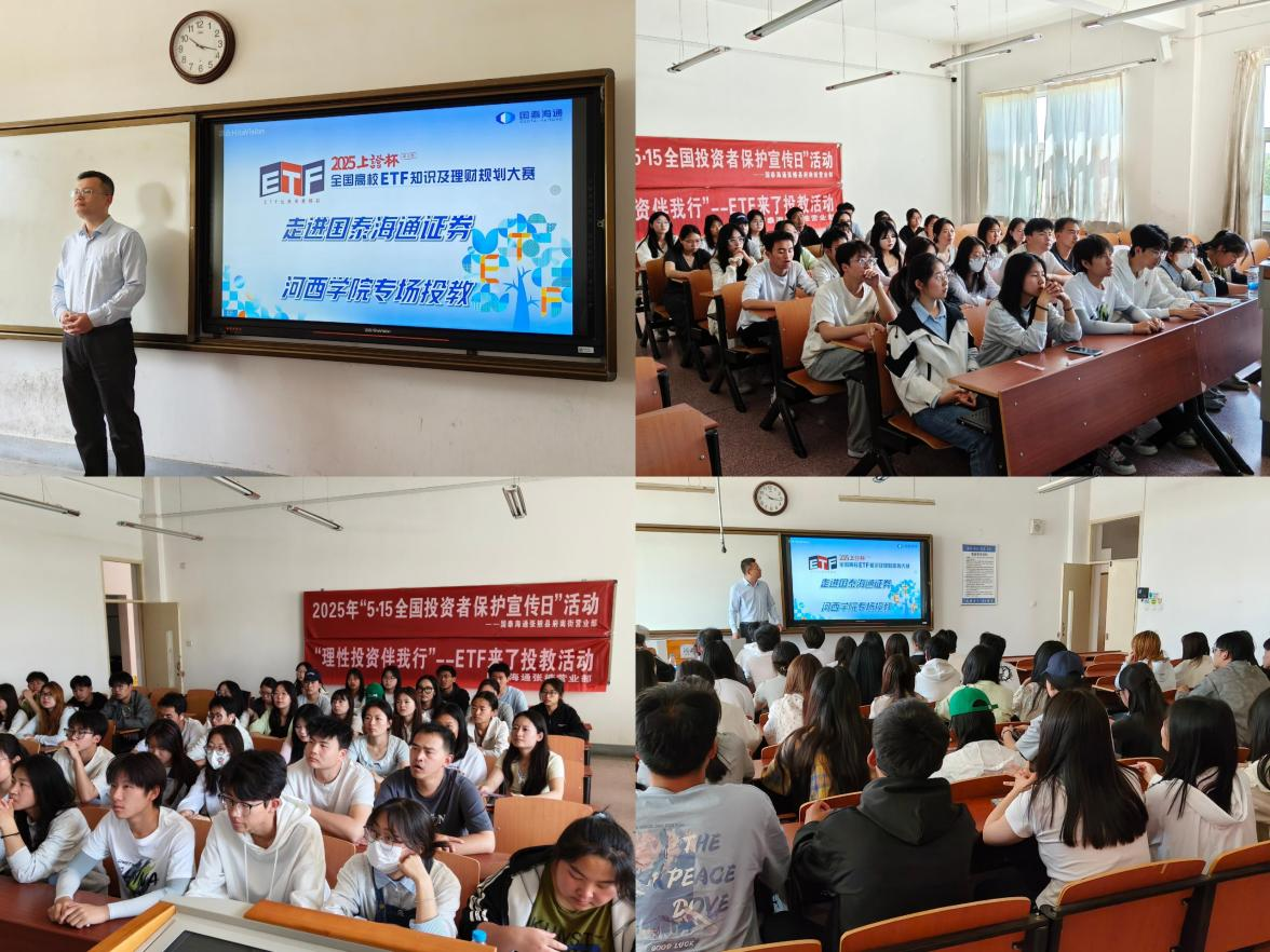 在全国投资者保护宣传日,国泰海通证券张掖营业部走进河西学院经管学院,结合“理性投资伴我行”——ETF来了投教活动,举办了“走进国泰海通证券,河西学院ETF知识及理财规划专场投教活动”。