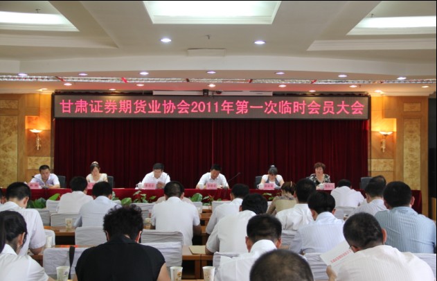 甘肃证券期货业协会二〇一一年第一次临时会员代表大会于2011年8月31日下午在兰州市顺利召开。会议主要完成了以下事项:通报中国证券业协会近期有关会议精神;经全体与会代表讨论审议《甘肃辖区证券行业经纪业务自律公约》、《甘肃辖区证券营业部综合考评暂行办法》。