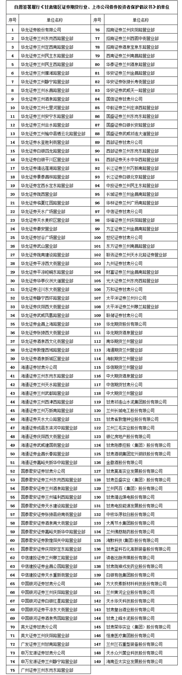甘肃辖区证券期货行业、上市公司自愿签署履行债券投资者?;こ槭?