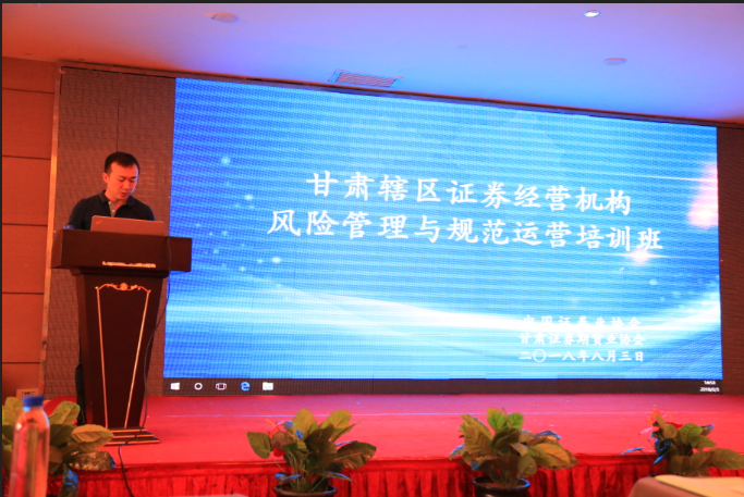为促进辖区证券经营机构进一步加强合规管理,提高自身规范运营能力,中国证券业协会与甘肃证券期货业协会于2018年8月3日在兰州联合举办“甘肃辖区证券经营机构风险管理与规范运营培训班”,辖区110多家证券经营机构近200名机构负责人和合规管理人员参加了培训,培训由协会副秘书长陈熠昕主持。