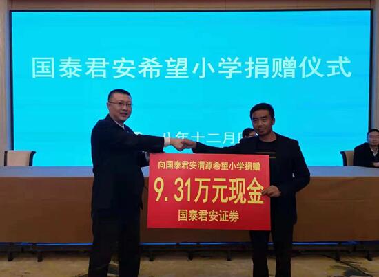 本次活动由渭源县副县长漆呈呈主持,陈耔宏女士为活动致辞?;峒涓仕喙扇ń灰字行挠胛荚聪卣┒┝苏笳铰院献餍?,国泰君安证券甘肃分公司向援建的渭源县希望小学捐赠现金9.31万元。甘肃股权交易中心、国泰君安证券甘肃分公司、贫困地区金融服务联盟的专家讲师就资本市场功能介绍、服务中小微企业等内容进行了专题介绍,渭源县30多家企业的负责人和财务人员参加了培训。