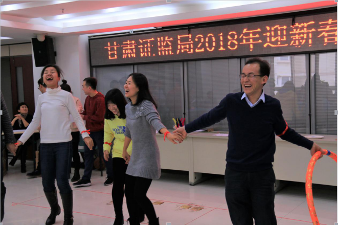2018年2月9日,春节前夕、辞旧迎新之际,甘肃证监局工会组织举办了2018年迎新春联欢会。全体监管干部及部分离退休人员,甘肃证券期货业协会、甘肃省上市公司协会秘书处全体工作人员参加了活动。