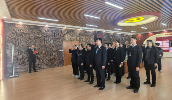 参与人员一同参观了省图书馆设立的法治文旅体验馆,通过互动体验和多媒体展示,深入了解了红色文化、黄河文化、敦煌文化、简牍文化等甘肃特色文化体系中的法治文化元素。随后,一行人前往红色文献主题馆,通过珍贵的历史文献和图片资料,重温了中国共产党的光辉历程,在党旗的见证下,党员们举起右拳,重温入党誓词,表达了对党的忠诚和为共产主义事业奋斗终身的决心。